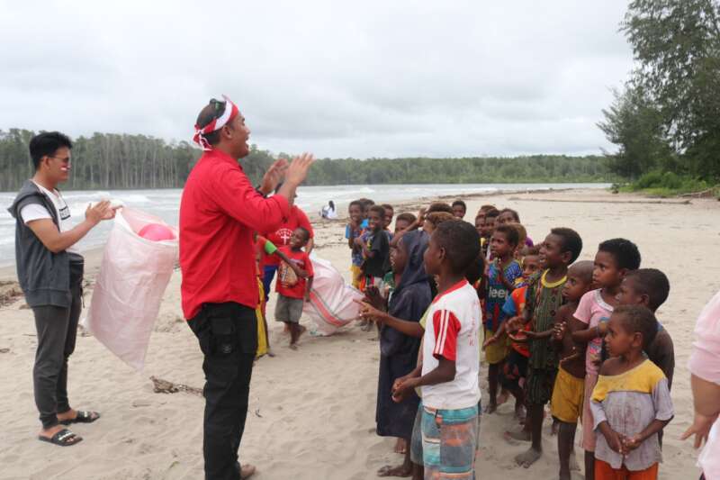 Tempuh Tiga Jam Perjalanan Laut, Tak Surutkan Semangat Binmas Noken Ikut Meriahkan HUT ke-77 Kemerdekaan Indonesia Bersama Masyarakat Kampung Keakwa
