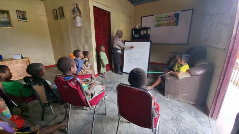 Aksi Polisi Ajar Anak-Anak di Intan Jaya