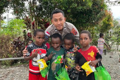 Momen Harmonis Personel Satgas Ops Damai Cartenz Bersama Masyarakat dan Anak-Anak di Mimika